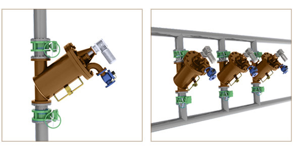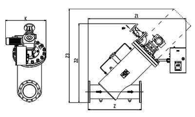 技術參數 單臺處理水量:45-2350m³/h 最大工作壓力:0.1-1.6Mpa 過濾器清潔時的壓力損失:≤0.018Mpa 最高工作水溫:95℃ 過濾精度范圍:100-3000μm 自清洗所需水量:<1% 自清洗時間:10-60秒 自清洗控制方式:壓差、時間及手動 電控方式:交流三相380V/ 50Hz 控制界面:數顯、旋鈕、開關 濾網類型:316L編織網、楔形網 尺寸對照表 安裝圖